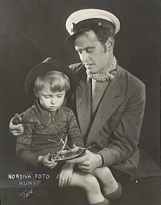 Billede: 1946. Erik Farup Wegeberg med sønnen Peter.