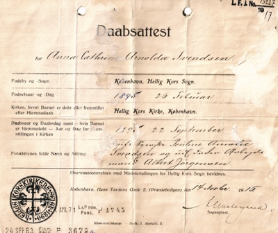 Billede: 1895. Dåbsattest.