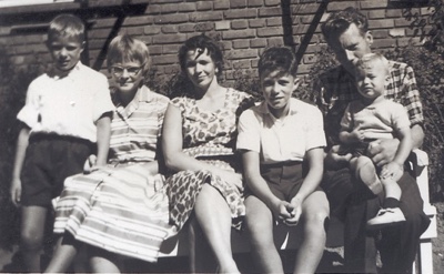 Billede: Familien Jensen: Bent, Ulla, Birgit, Gert, Christen med Jørn.