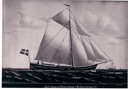 | Tjalk "Poul & Anna". Kendingsbogstaver NJRT. Bygget 1864 i Rhauderfehn. 37 17/100 tons. Registreret i Thisted 18. marts 1873. Købekontrakt Nykøbing Mors 17. marts 1876. Ejere: J. Nielsen, Handelsbetjent, Thisted med 1⁄2 part. C. Wegeberg Christensen, Skibsfører, Taabel, Vestervig med 1⁄2 part. Solgt til Aalborg ca. 1882-83. (Ikke fundet). Skipper Christen W. Christensen med næringsbevis som sætteskipper dat. 12. marts 1862, Hassing Revs Herred, Thisted Amt. Blev fører af "Poul & Anna" 8. juni 1877. "Poul & Anna" blev i 1876 ført af Carl Christian Leerhøy. - På forespørgsel om, hvor originalmaleriet befinder sig, svarede Erling Leerhøy 18/2-2005: "... du vil godt vide noget om maleriet, jo jeg ved hvor det var for 30-40 år siden, men ikke hvor det er nu. Ang. så kan jeg i Danmarks skibsliste for 1917 se, at dengang eksisterede "Poul & Anna" og "Petrine" stadig". (Foto af "Poul & Anna" med undertekst: Capt. C. W. Christensen (Maleri af V. Arnesen, 1880, Limfjordsmuseet). Maleren Vilhelm Carl Ferdinand Arnesen blev født i Flensburg 25.11.1865 og døde i København 24.03.1948. (Weilbach, Dansk kunstnerleksikon) Skibet var opkaldt efter Poul Debel i Varde, der var korresponderende Reder, og hans hustru Anna. Peder Larsen (10. april 1838 - 9. nov. 1916) tog styrmandseksamen fra Fanø Navigationsskole i 1864 og var skipper på "Poul & Anna" i perioden 1867-1876, (Kilde: Torben Klinting: Fra Jyllands Vestkyst, 1930) Danmarks skibsregister 1871: På hjemmesiden www.fynhistorie.dk er der tilgængeliggjort en liste over alle 2090 registrerede danske handelsskibe i 1871 (over 15 registertons). Foruden skibets navn og eventuelle oplysninger om skibstypen er også anført, hvem der var skibets fører/ejer*. For de af skibene, som er hjemmehørende i Svendborg, Rudkøbing, Assens eller Fåborg, er der yderligere oplysninger om skibenes byggested, byggeår, byggemateriale (trætype), skibenes dybdegang og størrelse målt i registertons. Nr. Signal - Navn - Fører - Side 1720 - Paul & Anna - P. Larsen - 62 Kuf "Petrine". Drægtig 9 3/4 danske Commercelæster. Kendingsbogstaver NHCM. Længde 41,6' Bredde 12,3' Dybde 5,1'. Lastede 20 tons. Indført fra Norge 1824 under navnet "Den flyvende Engel". Akvarel af Rasmus Henrik Kruse findes på Dansk Folkemuseum. Kilde og foto: Skudefart og Limfjordshandel, side 10. "Solgt i 1857 til brødrene C.W. og Ole Christensen. Skjøde fra Ole Christensen eller Ole Chr. Wegeberg til Nicolaj Andersen paa 1⁄2 Part i Slupskibet "Petrine" med Redskaber, dat. 19/2. læst 3/3. 1868." Akvarel (60cm*46 cm) af "Petrine af Thisted" med undertekst: Capt. C. W. Christensen, malet 1880 af V. Arnesen, er i familiens eje. Danmarks skibsregister 1871: Nr. Signal - Navn - Fører - Side 1746 - Petrine (slup) - C. W. Christensen* - 62 Den danske Skibsmaaling efter "Commercelæster" á 150 Kubikfod var gjældende, indtil Loven af 13de Marts 1867 indførte "Register Tons" à 91,59 Kubikfod = 100 Cubicfeet (2,83 kubikmeter) efter den engelske Maalemethode af 1854, hvilken i alt væsentligt blev antagen af næsten alle søfarende Nationer. Kilde: "Fra Hjulskibenes dage" 1919, side 133. Skipper Christen Wegeberg Christensen fik næringsbevis som sætteskipper dat. 12. marts 1862, Hassing Revs Herred, Thisted Amt. Klara Kristiane Lerhøj er i folketælling 1. feb. 1880 noteret som plejedatter hos hendes morfar og mormor: "Thisted, Refs, Vestervig, Taabel By, 12. hus, FT 1880. Kristen Vegeberg Krestensen, 60 år, Gift, Husfader, Skipper, V.Vandet Sogn, Th. A. Mariane Krestensen, 60 aar, Gift, hans hustru, Thilsted Sogn, Th. A. Klare Kristiane Leerhøi, 3 aar, ugift, deres pleiedatter, her i sognet" Vester Vandet kirkebog: Christen f. 26/2-1820. (Christen Christensen Brandi Wegeberg) Forældre: Huusmand og Søe Limith nr. 18 Christen Christensen Brandi og Hustru Maren Christensdatter (Høi) af Klitmøller. |